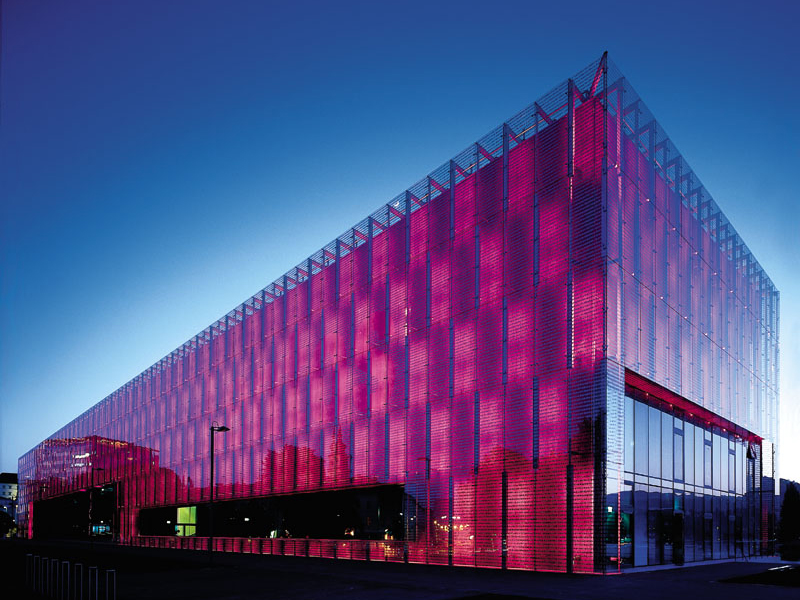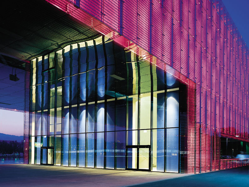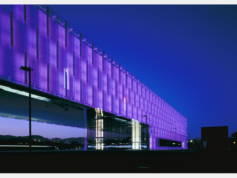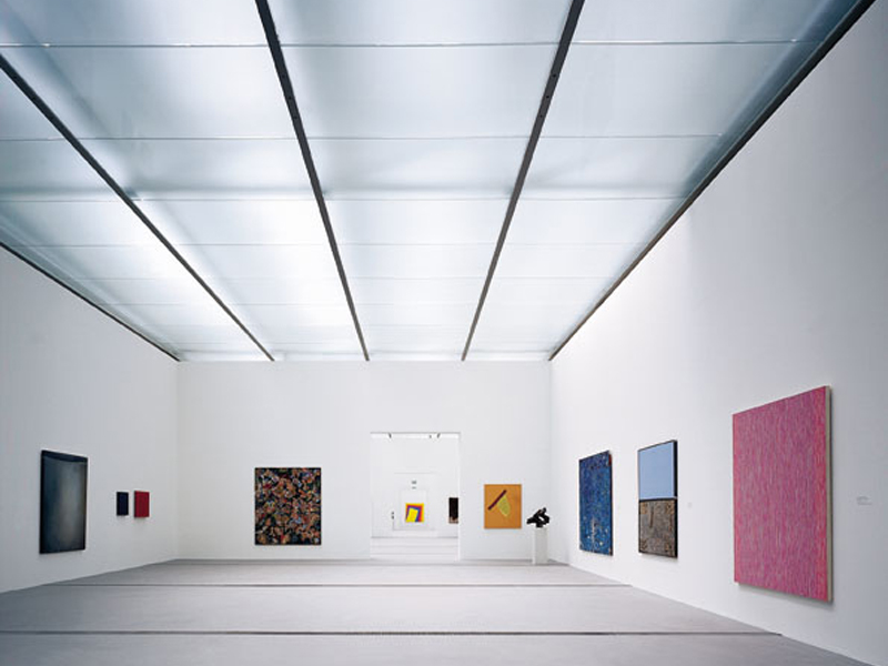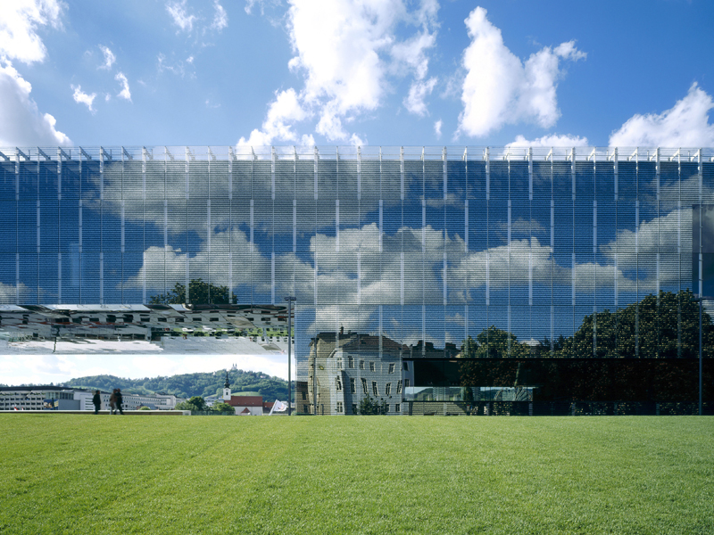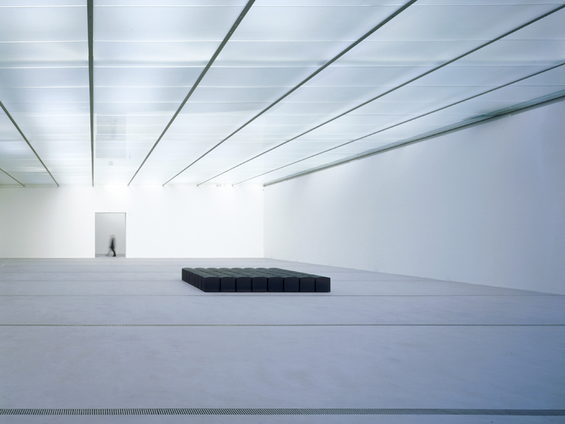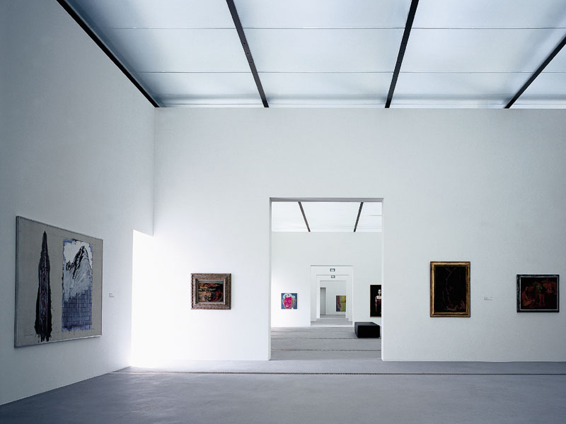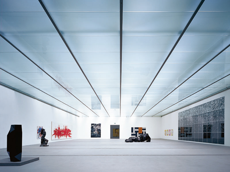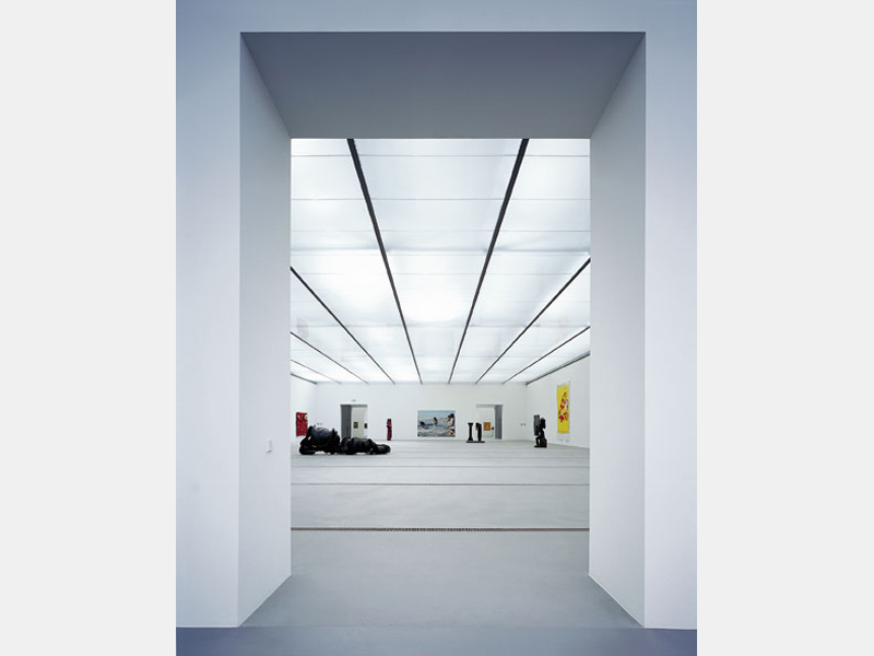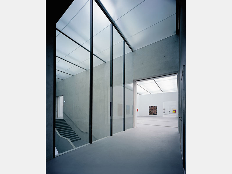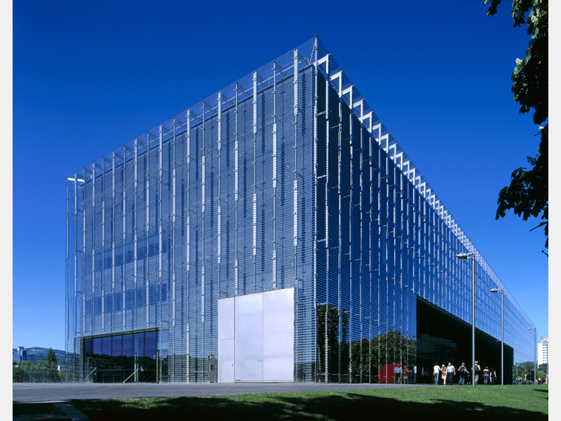 The cubical new museum building is situated on the riverside of the Danube. A volume has been cut out of this massive form to create a sheltered exterior space which serves as entrance, urban area, meeting place and platform for sculpture exhibitions. Its outside shell is completely made of glass but semitransparent due to the serigraphy treatment. This makes it possible to perceive the structure of the building from the outside and to have a filtered view of the surroundings from the inside.